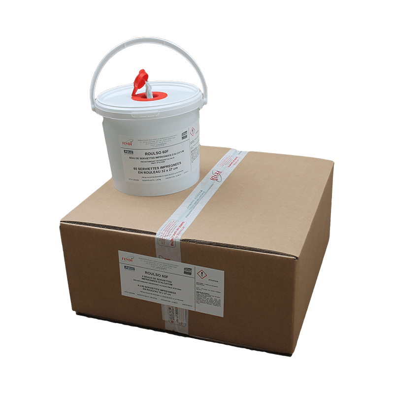 Dévidoir rempli de SERVIETTES IMPREGNEES D'ALCATUM pour le dégraissage et la décontamination de surfaces lisses. 1 face à effet grattant ne rayant pas les supports. Ne laissent pas de traces après séchage. Non pelucheuses. Très pratique pour les interventions en tenue MURU.