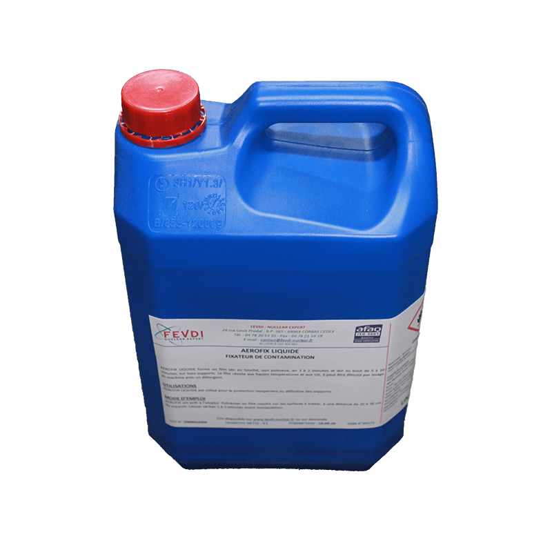 Fixateur de contamination sur textiles et matériaux plastiques souples (ex : tenues MURU)pulvérisable. Forme un film liquide bleu résistant aux hautes températures et aux UV.
