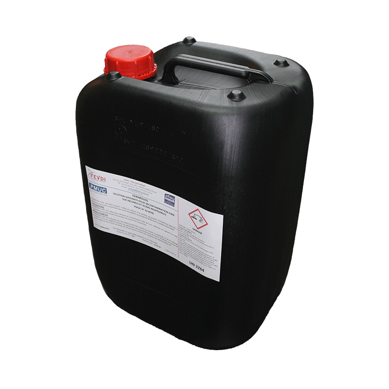 Produit moussant oxydant sans ammonium pour la décontamination avec une érosion de 0,2 à 0,3 µm sur inox 316. A utiliser en assocation 50/50 avec FEVDIMOUSS NEUTRE