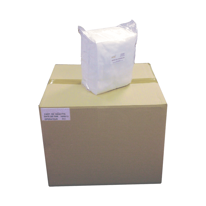 Serviettes très absorbantes. Exemptes de cellulose, non tissées, non pelucheuses. Résistantes et compatibles avec l'acide nitrique à haute concentration et aux produits de la gamme FEVDIRAD.
